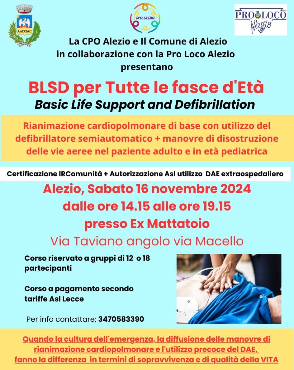 Cos'è Rianimazione cardiopolmonare di base con utilizzo del defribillatore semiautomatico + manovre di disostruzione delle vie aree nel paziente adulto e in età pediatrica Presenti all'evento Margari Fabiola Gianfreda Massimiliano